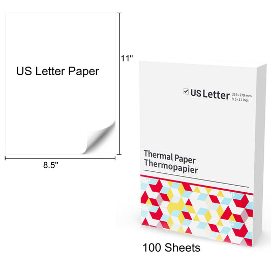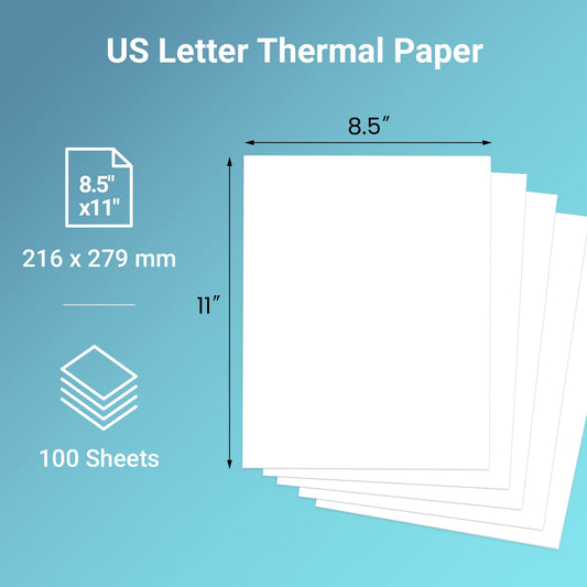 Odaro Thermal Printer Paper 8.5 x 11 US Letter Size Paper, Multipurpose Office White Paper - 100 Sheets, Compatible with M08F, MT800, MT800Q,M832, and Other Letter Portable Printers