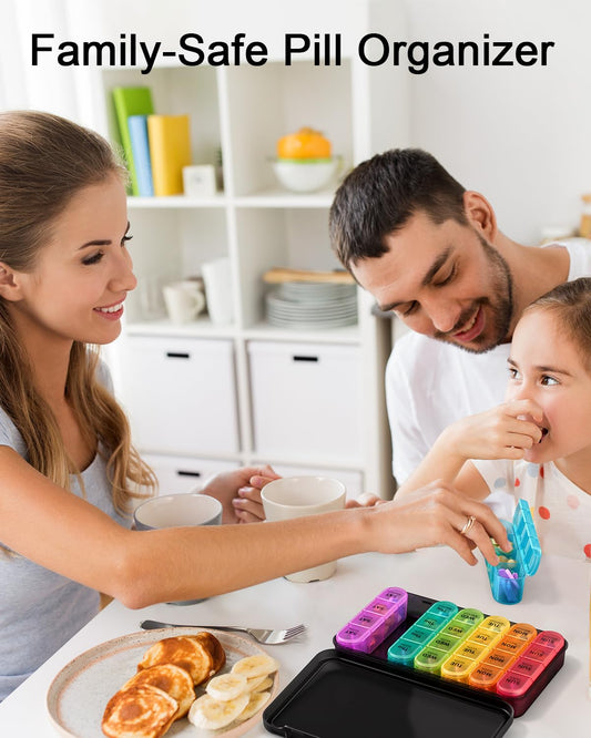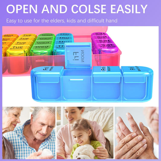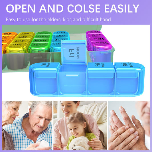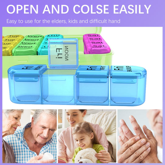 Odaro Weekly Pill Organizer 4 Times a Day, Daily Pill Box 7 Day, Large Travel Pill Case with 28 Compartment to Hold Medicine, Vitamin and Supplement (Color)